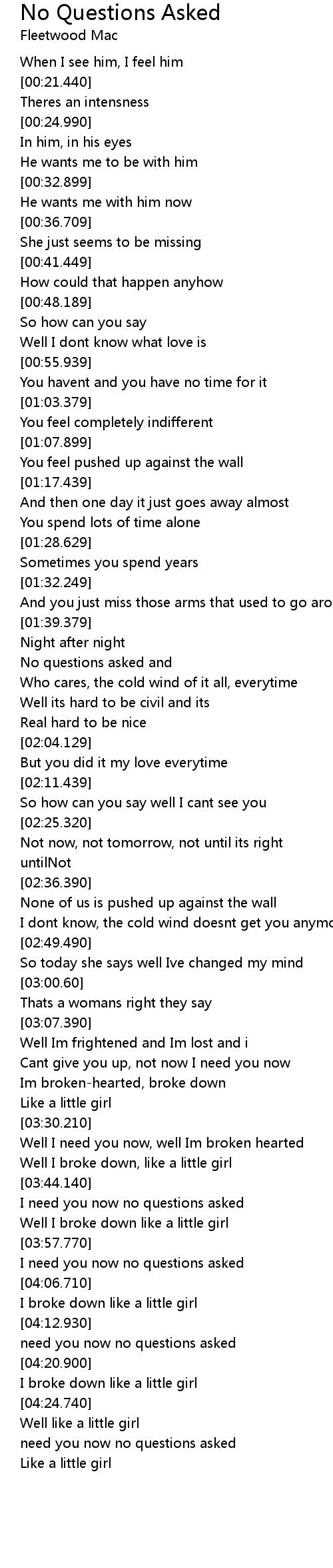 | [01:48.999] | No questions asked and |