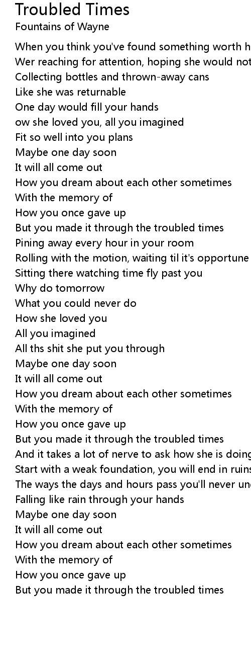 But you made it through the troubled times |