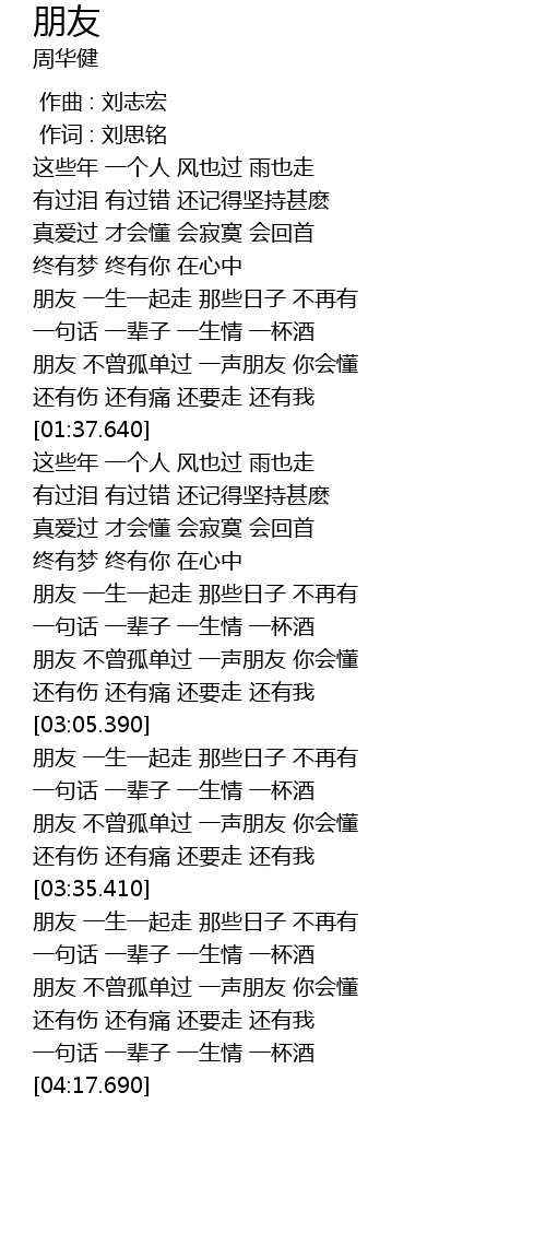 | [02:50.690] | 朋友 不曾孤单过 一声朋友 你会懂 |