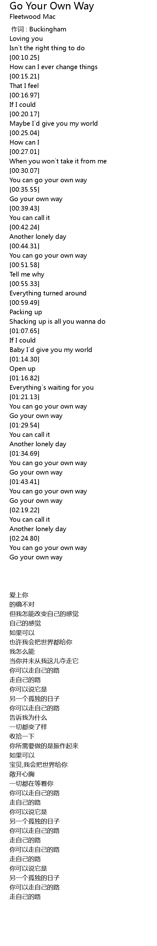 | [02:16.71] | Go your own way |