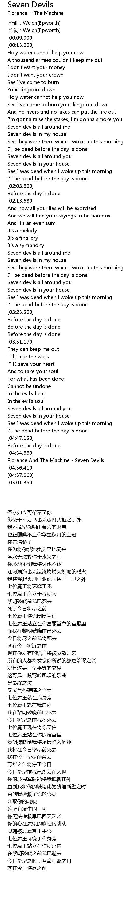 | [04:55.490] | Florence And The Machine Seven Devils |