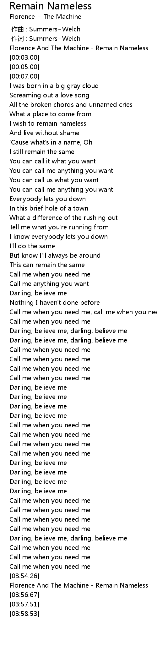 | [03:55.11] | Florence And The Machine Remain Nameless |