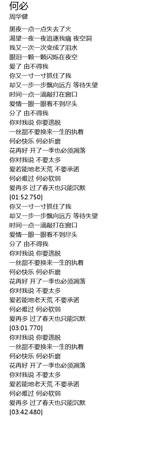 | [03:15.330] | 何必快乐 何必折磨 |