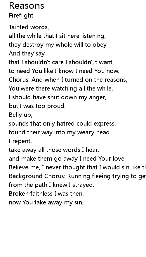 | Chorus: And when I turned on the reasons, | |