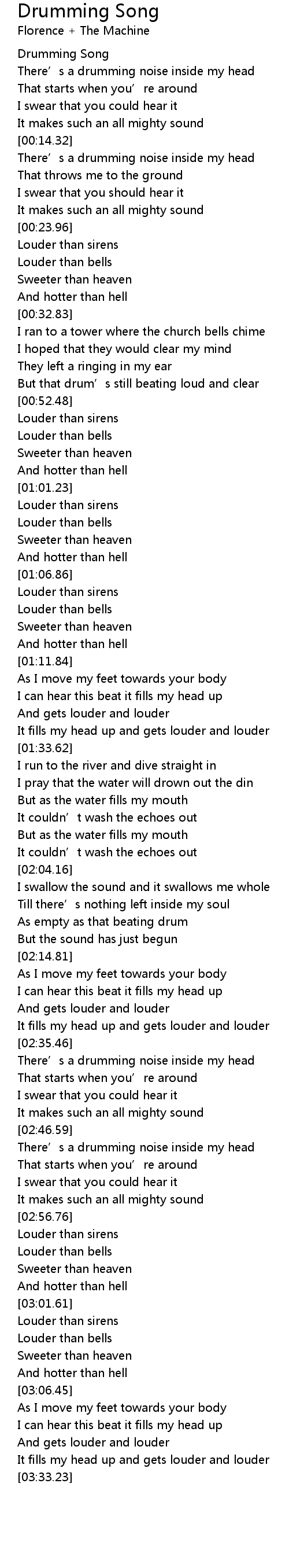 | [02:47.19] | There' s a drumming noise inside my head |