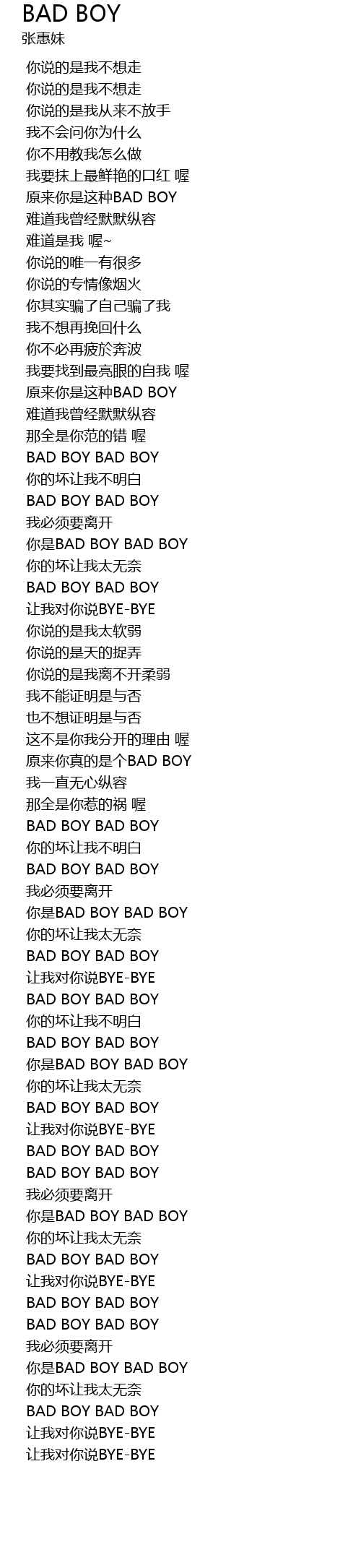 | [03:55.710] | nǐ shì BAD BOY BAD BOY |