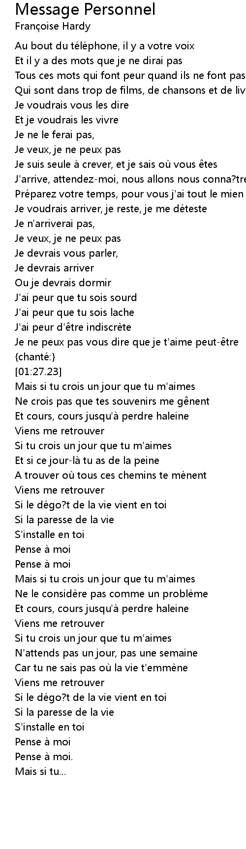 | [01:21.80] | Je ne peux pas vous dire que je t' aime peut tre |