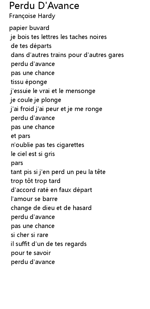 | 歌曲 | Perdu D'Avance |
