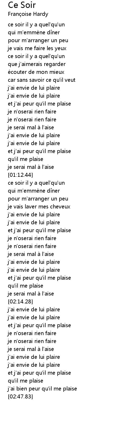 | [01:05.01] | et j'ai peur qu'il me plaise |