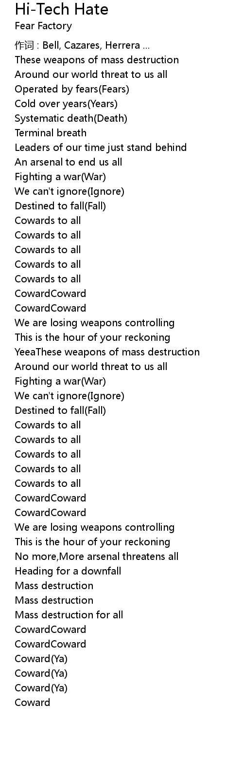 | 歌曲 | Hi-Tech Hate |