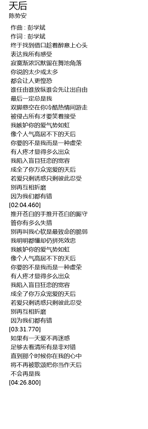 | [04:09.840] | 将不再被歌颂把你当作天后 |