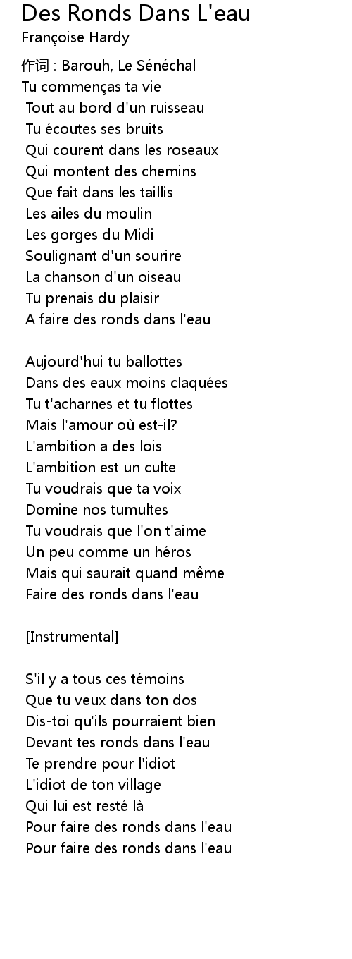 | 歌曲 | Des Ronds Dans L'eau |