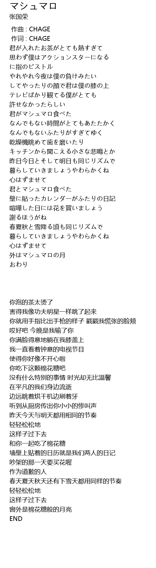 | [00:00.00] | zuò qǔ : CHAGE |