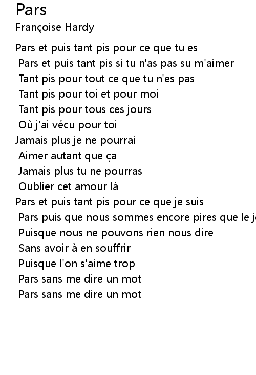 | Pars et puis tant pis si tu n' as pas su m' aimer | |