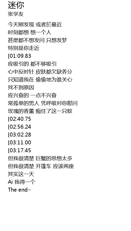 | [02:02.48][03:02.28] | 迷你的心 总有点 微雨 |
