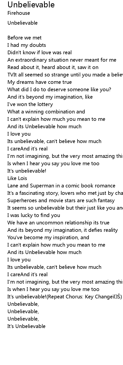 | Unbelievable, | |