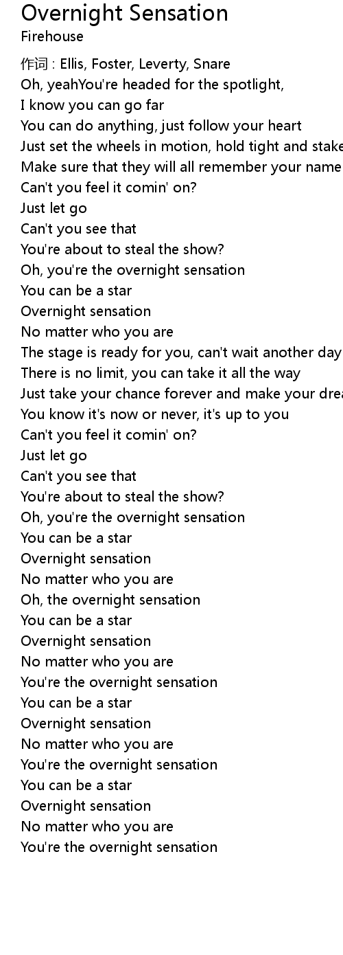 | You' re the overnight sensation | |