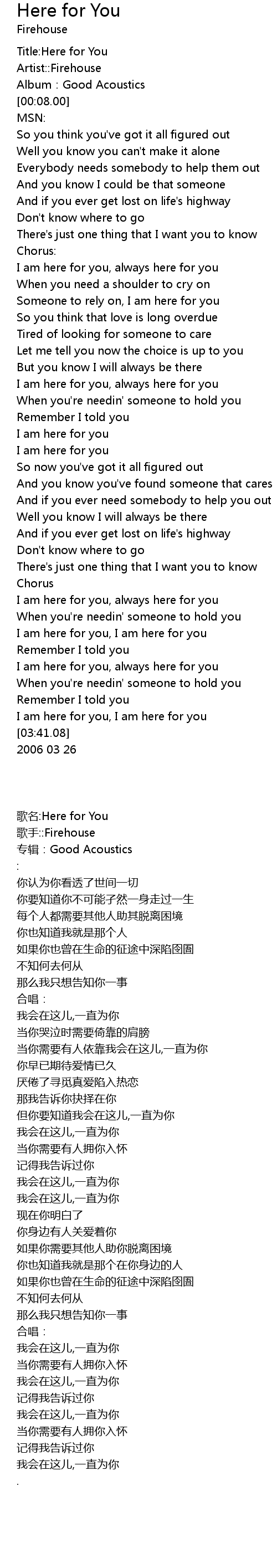 | [00:00.00] | Title: Here for You |