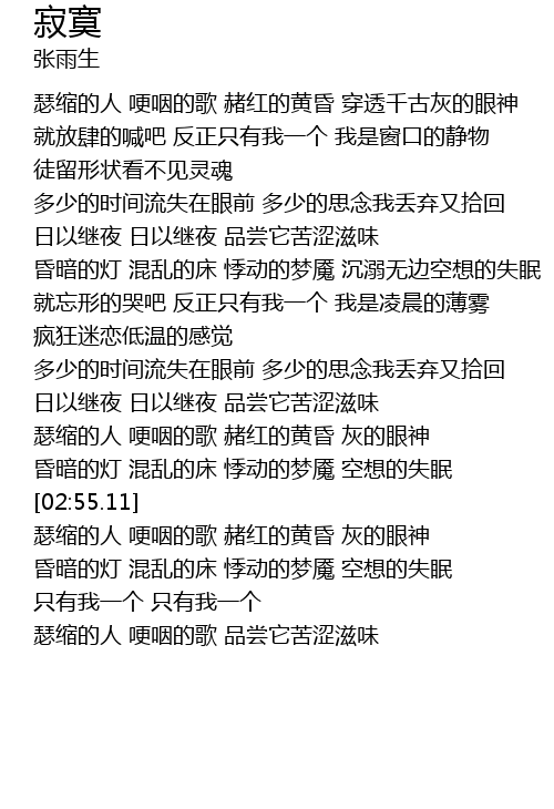 | [02:25.59] | rì yǐ jì yè rì yǐ jì yè pǐn cháng tā kǔ sè zī wèi |