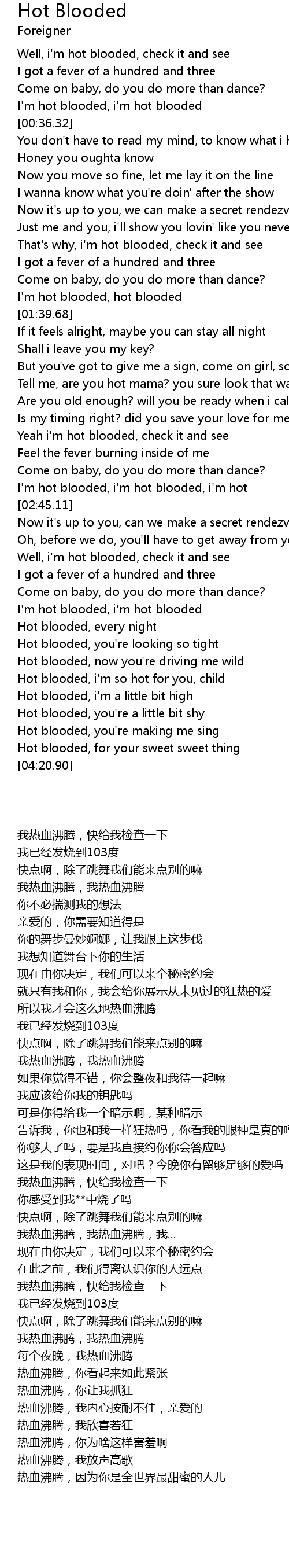 I'm hot blooded, i'm hot blooded, i'm hot |