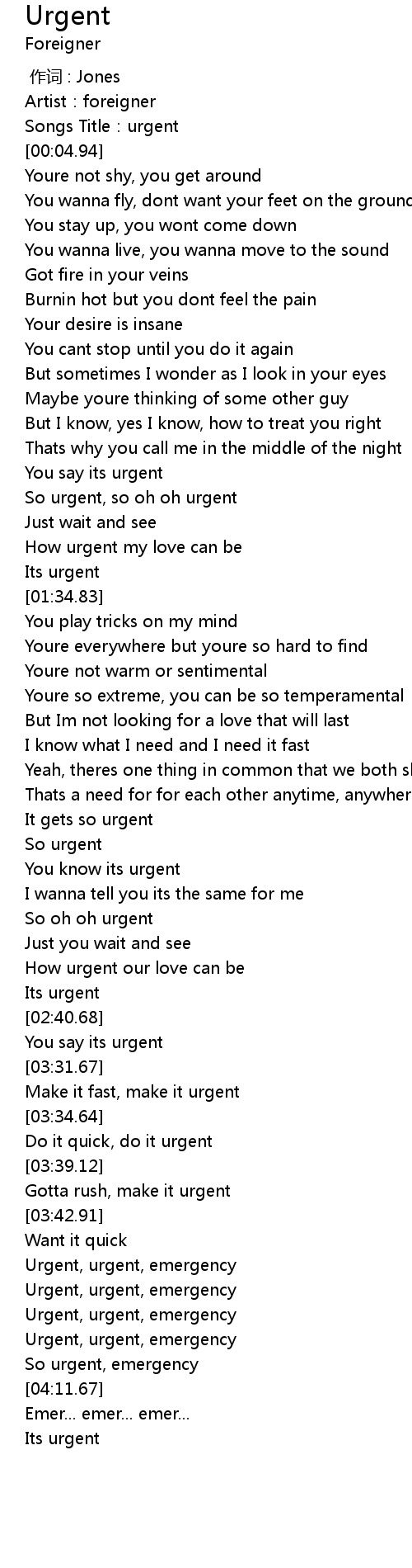 | [01:10.98] | Thats why you call me in the middle of the night |