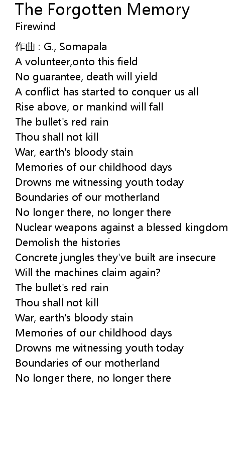 | 歌曲 | The Forgotten Memory |