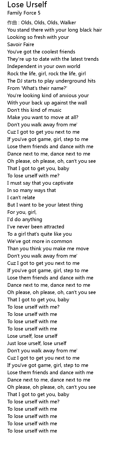 | Lose urself, lose urself | |