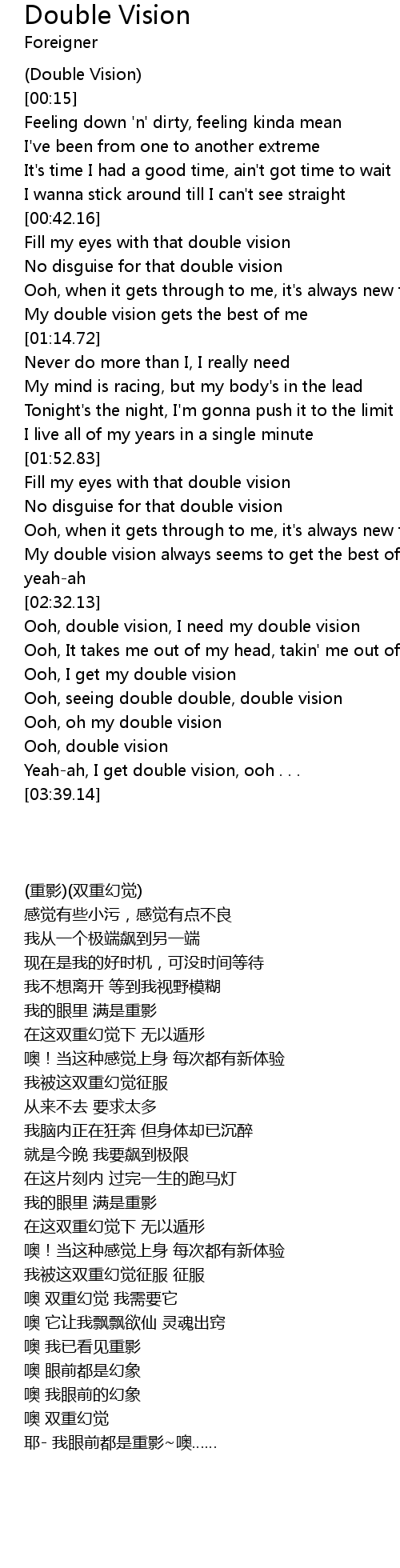 Yeah-ah, I get double vision, ooh . . . |