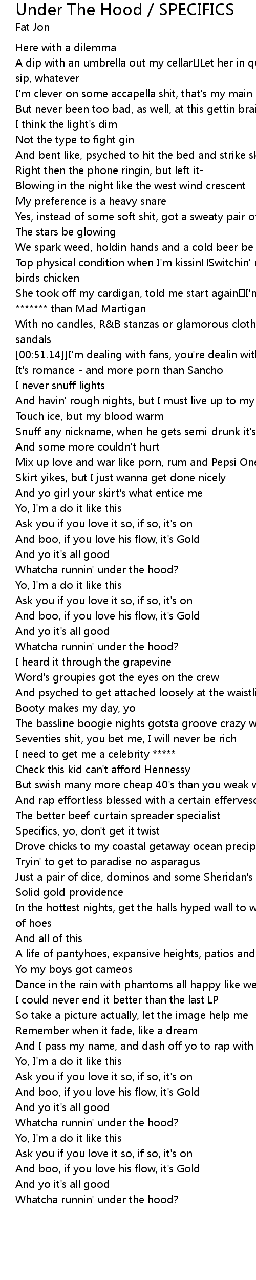 | [02:46.93] | Whatcha runnin' under the hood? |