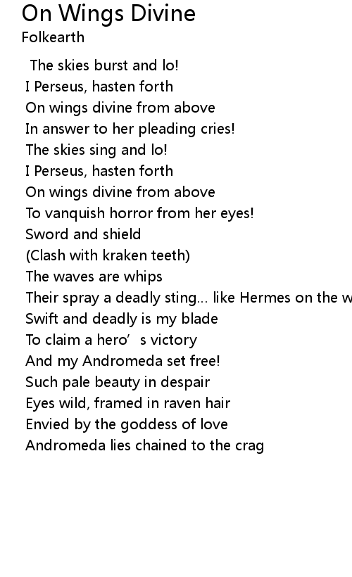 | On wings divine from above | |