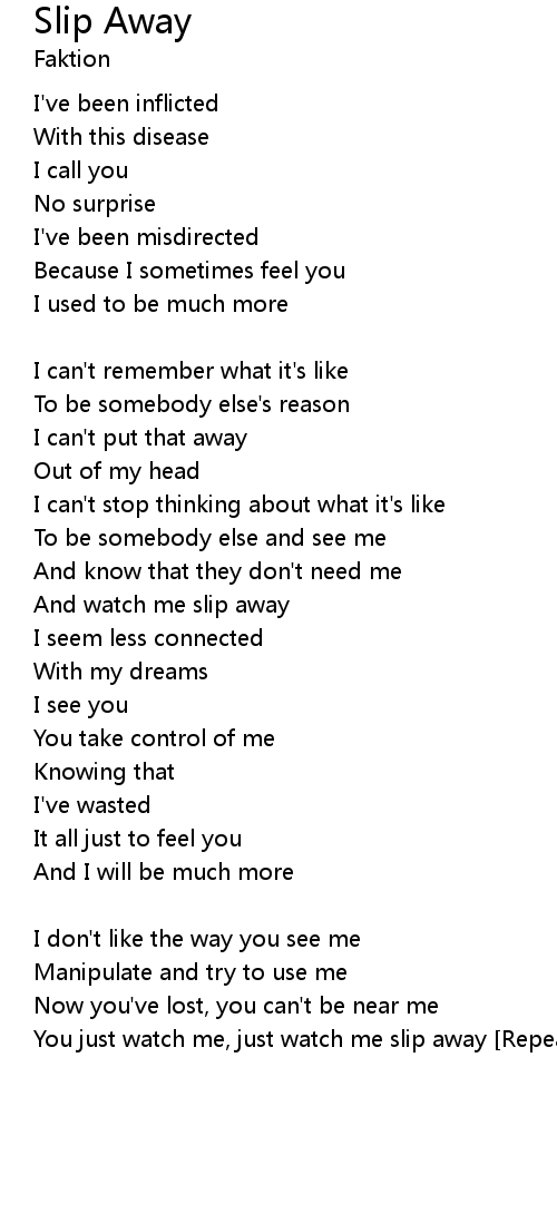You just watch me, just watch me slip away [Repeat Chorus] |