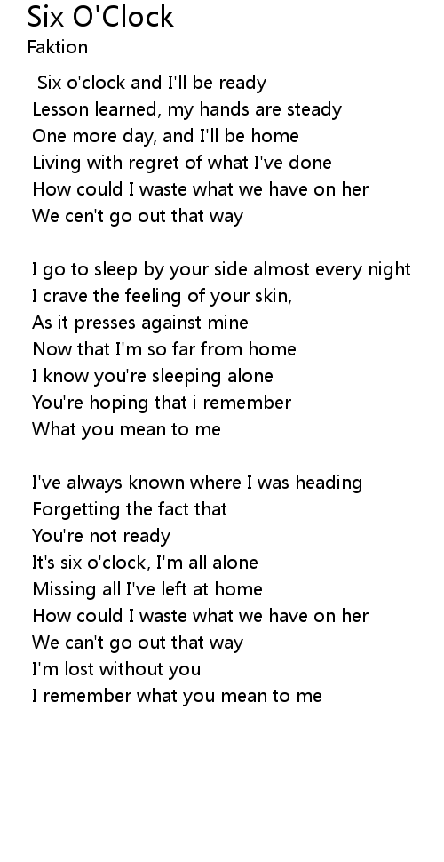 | It's six o'clock, I'm all alone | |
