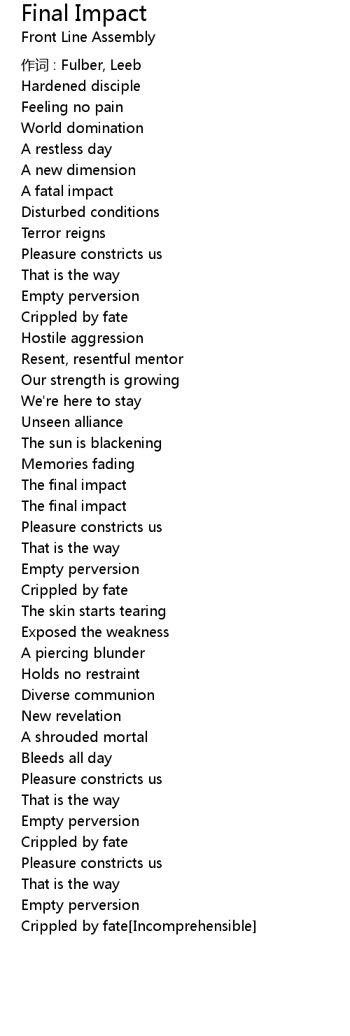 | 歌曲 | Final Impact |