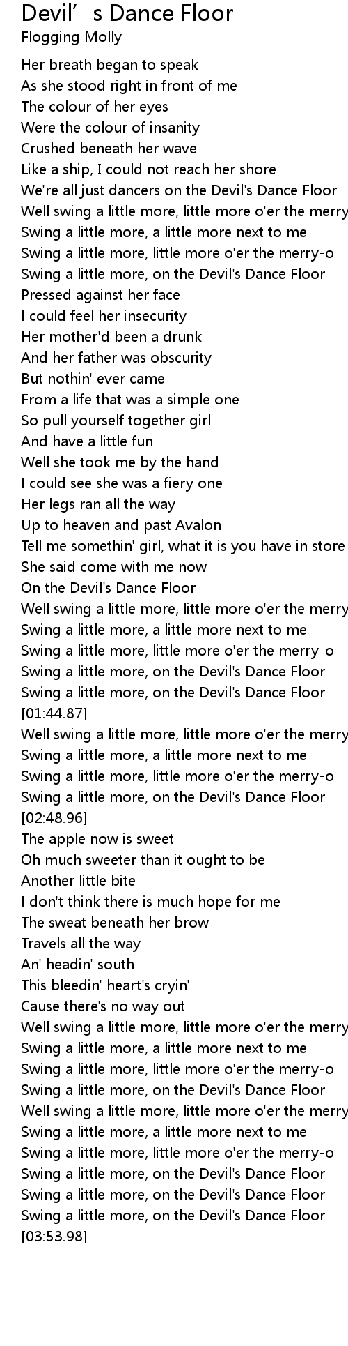 Swing a little more, on the Devil's Dance Floor |