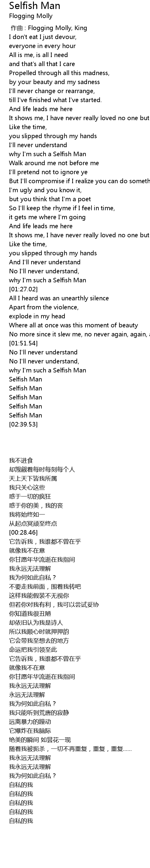 | [02:28.68] | Selfish Man |