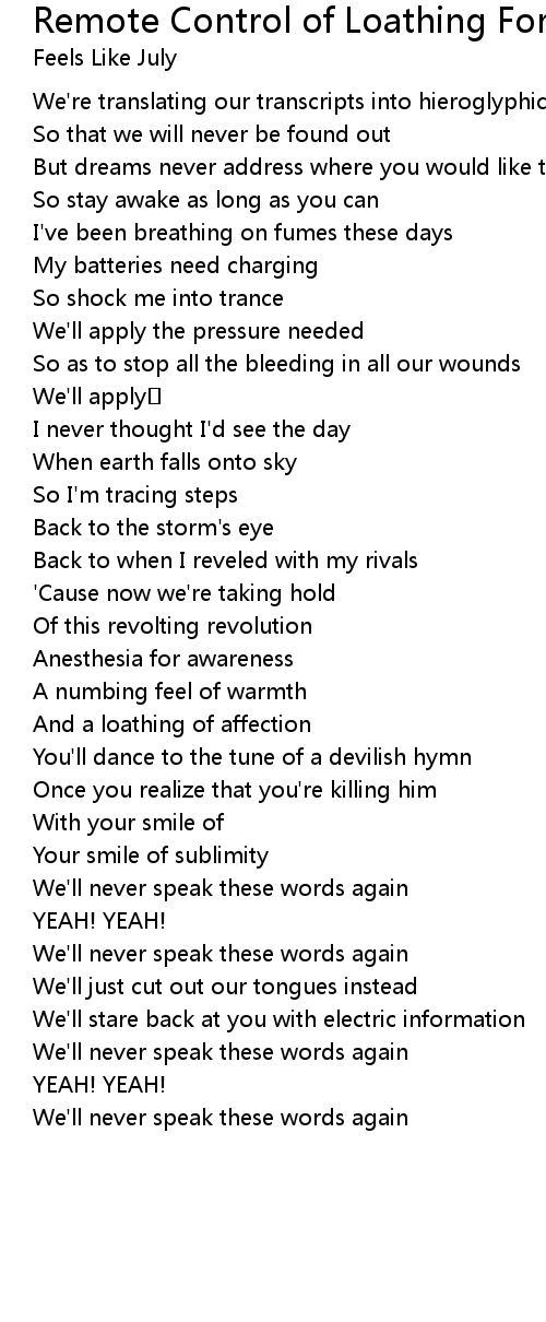 | 歌曲 | Remote Control of Loathing For... |