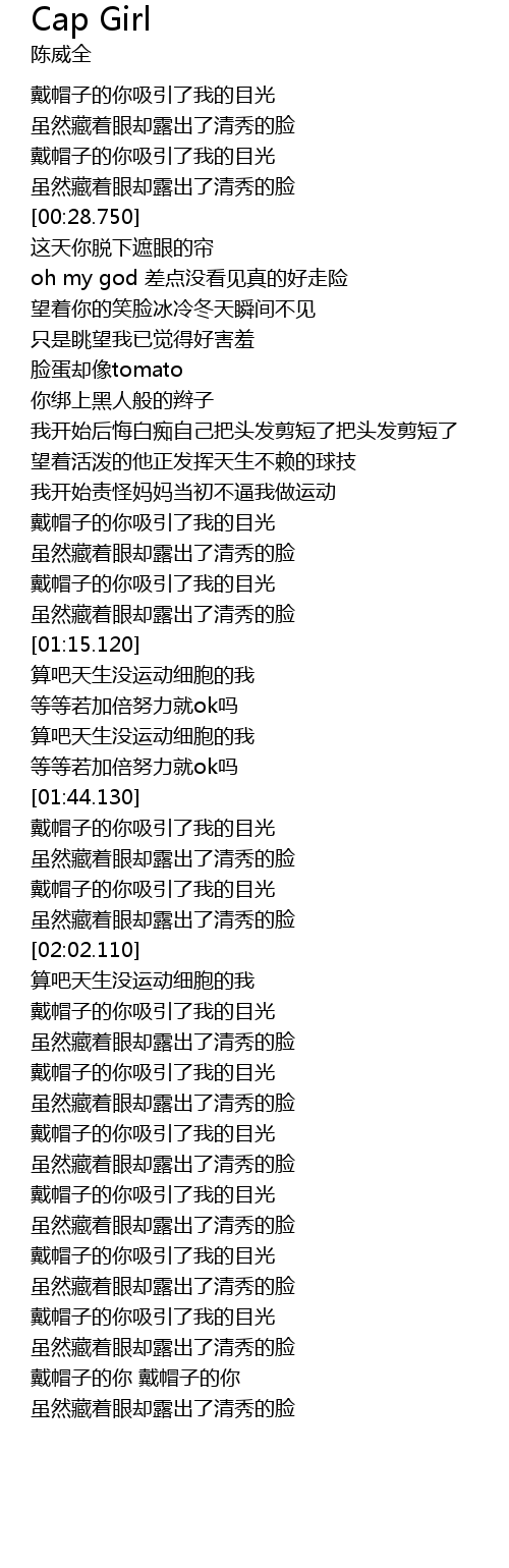 | [03:15.240] | 戴帽子的你 戴帽子的你 |