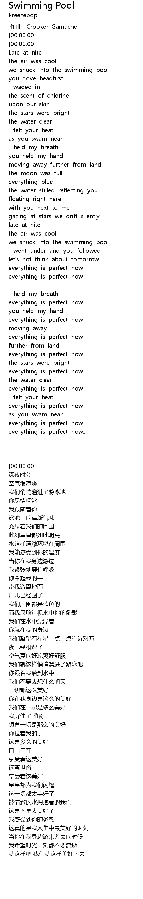 | [01:44.383] | 我们悄悄溜进了游泳池 |