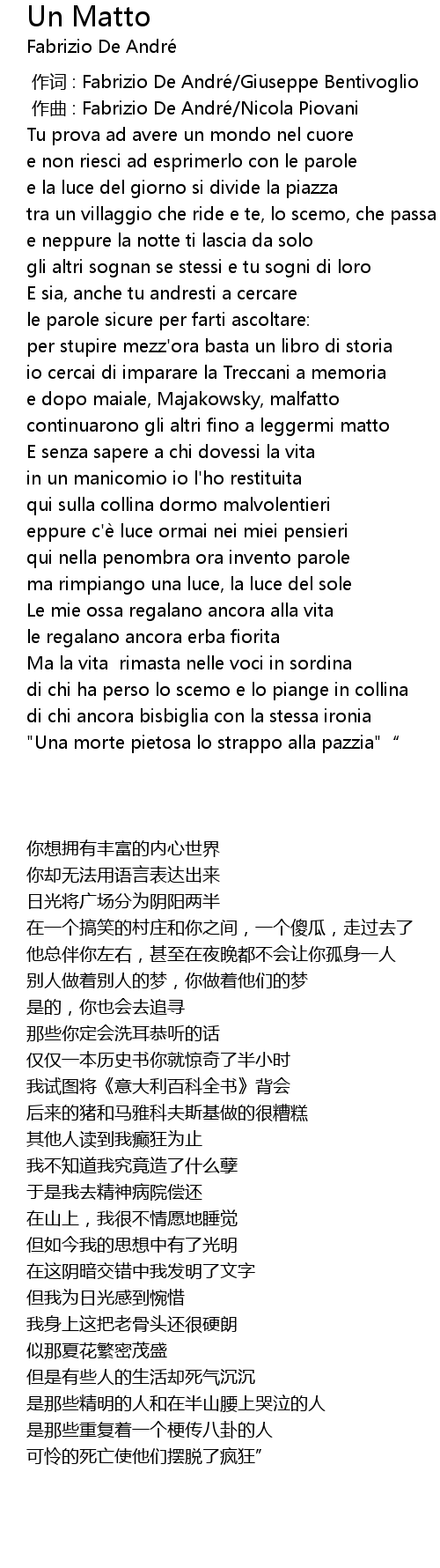 | [00:01.000] | zuò qǔ : Fabrizio De André Nicola Piovani |
