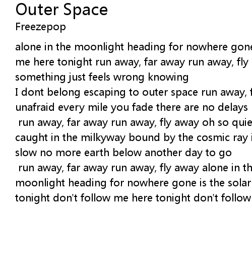 I dont belong escaping to outer space run away, far away run away, fly away unafraid every mile you fade there are no delays |