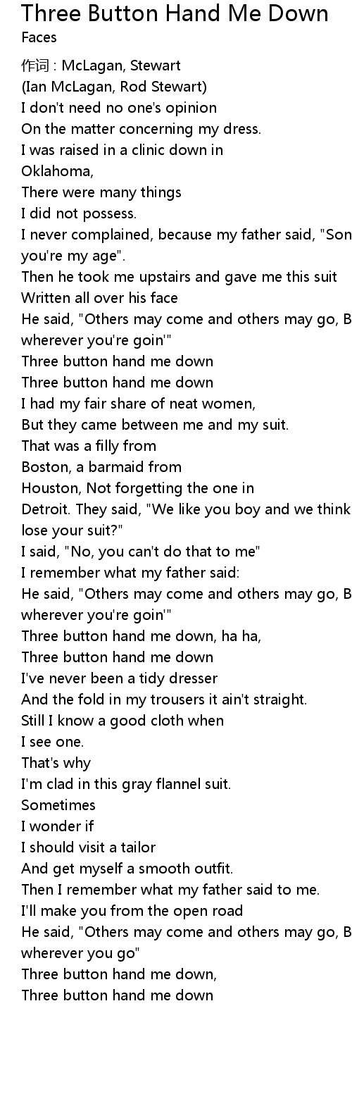 | He said, "Others may come and others may go, But that suit will be around wherever you're goin'" | |