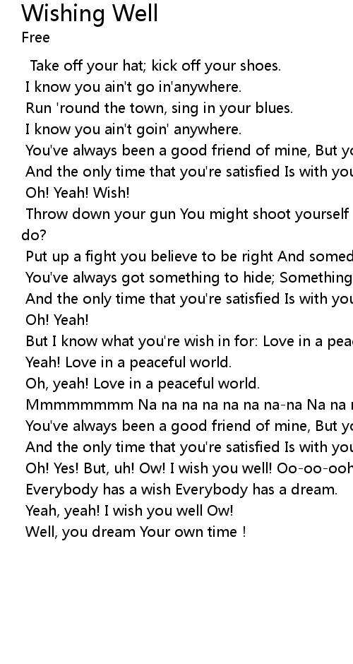 | Oh! Yes! But, uh! Ow! I wish you well! Oo-oo-ooh! The wishing well! Ow! | |