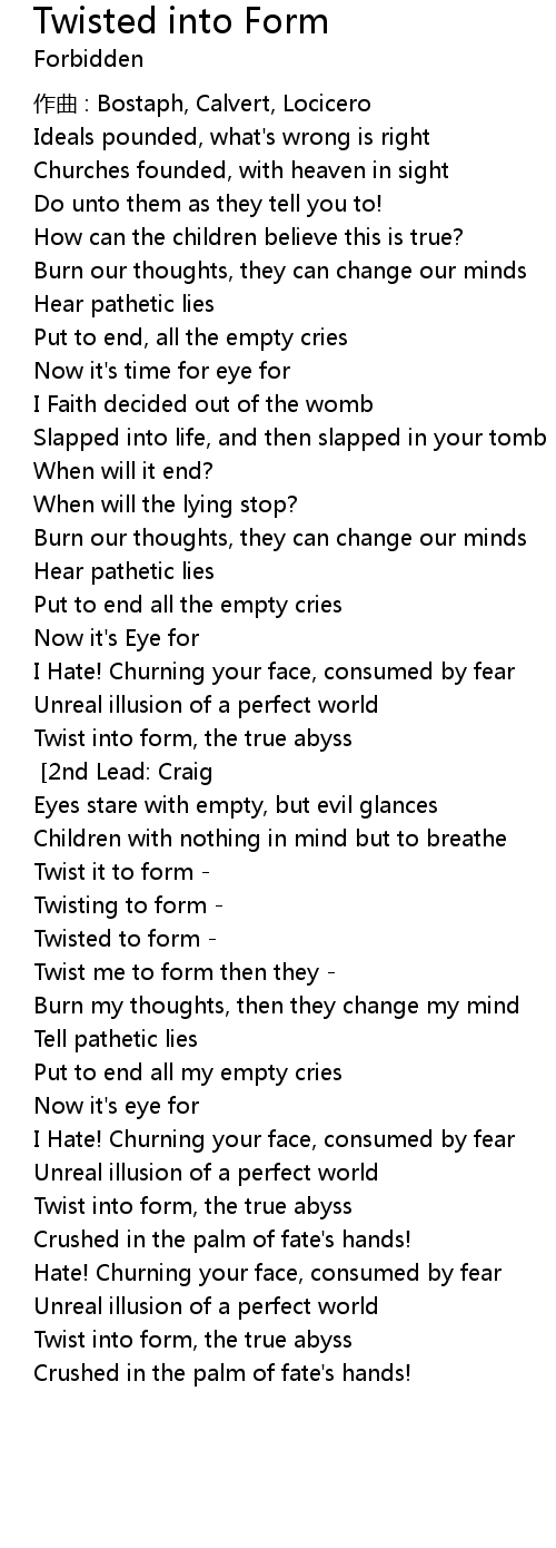 | 歌曲 | Twisted into Form |