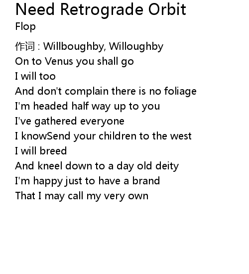 | 歌曲 | Need Retrograde Orbit |