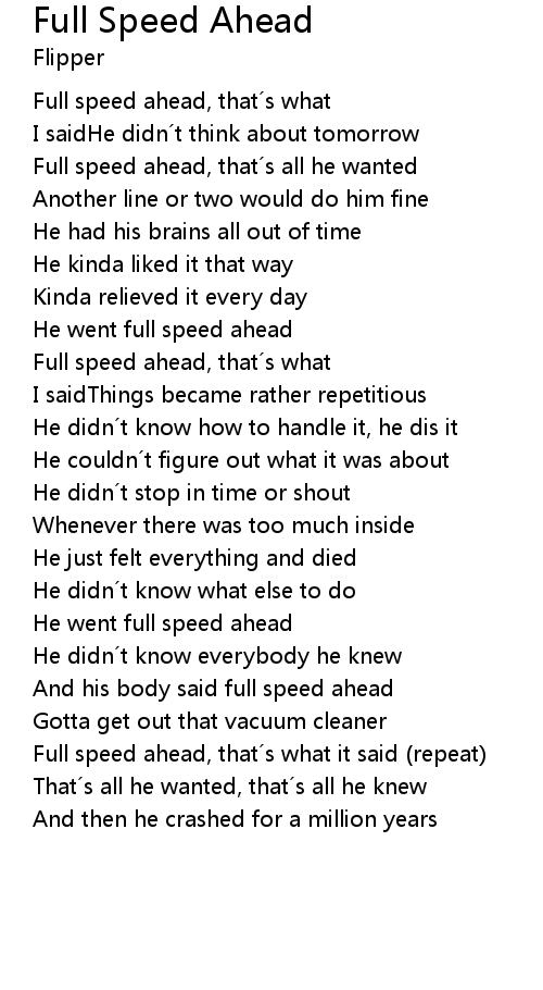 | Full speed ahead, that´s what it said (repeat) | |