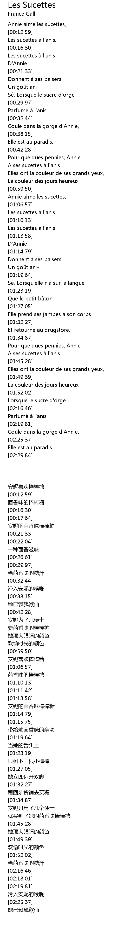 | [00:17.64] | Les sucettes a l' anis |
