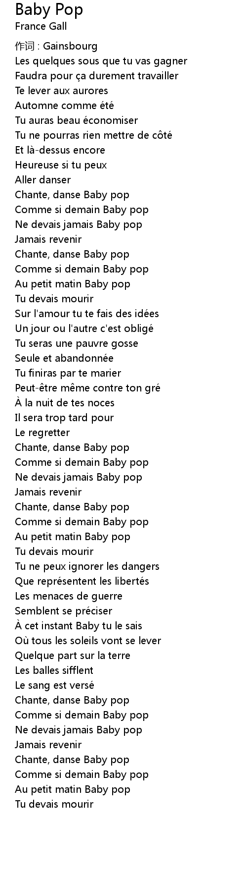 | 作词 : Gainsbourg | |