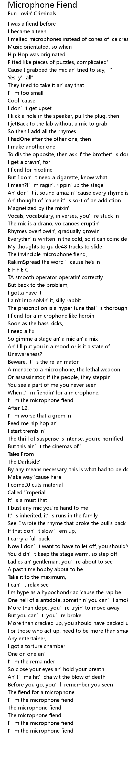 | I' m the microphone fiend | |