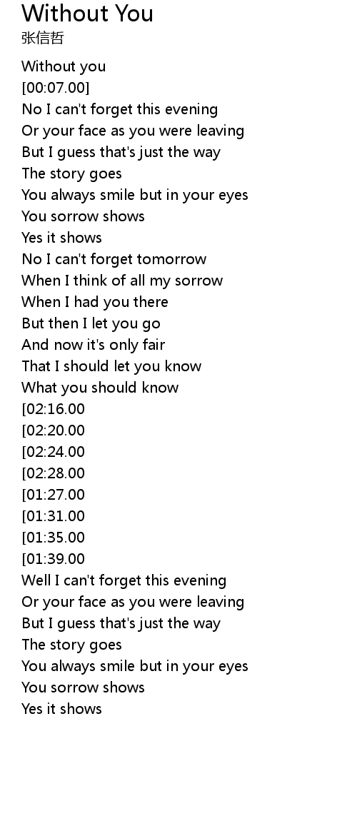 | [03:08.00][02:20.00][01:15.00] | If living is without you |