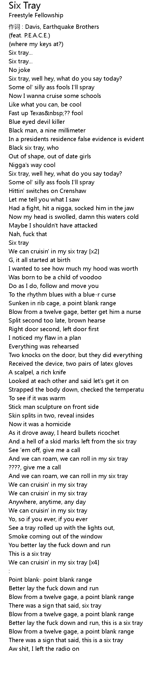 | 歌曲 | Six Tray |